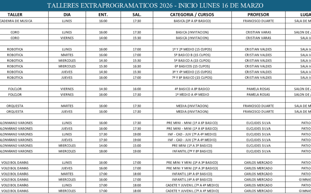 Talleres Extraprogramáticos por comunicaciones IAC comunicaciones IAC | Mar 10, 2026 | Uncategorized | 0 Comentarios